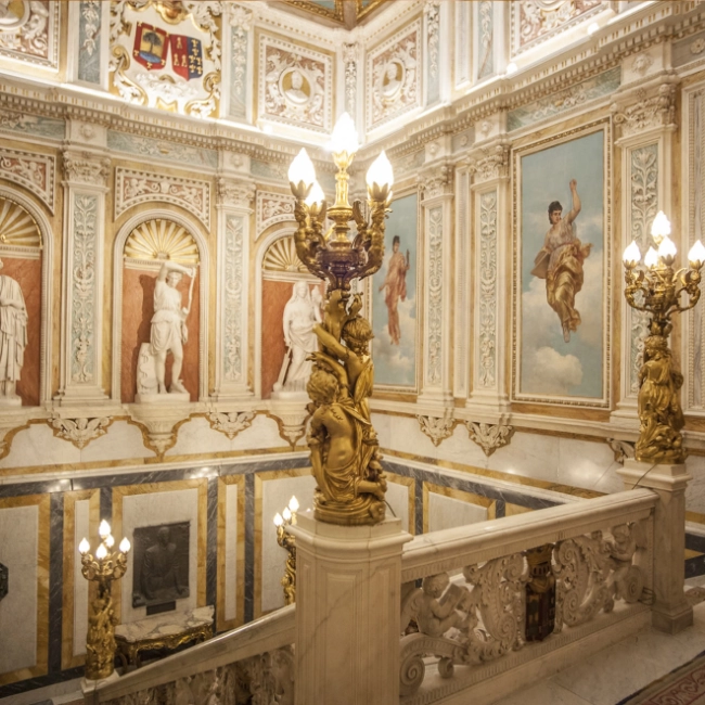 Situado en el Paseo de Recoletos. Un edificio elegante que representa el auge de la burguesía madrileña del siglo XIX.